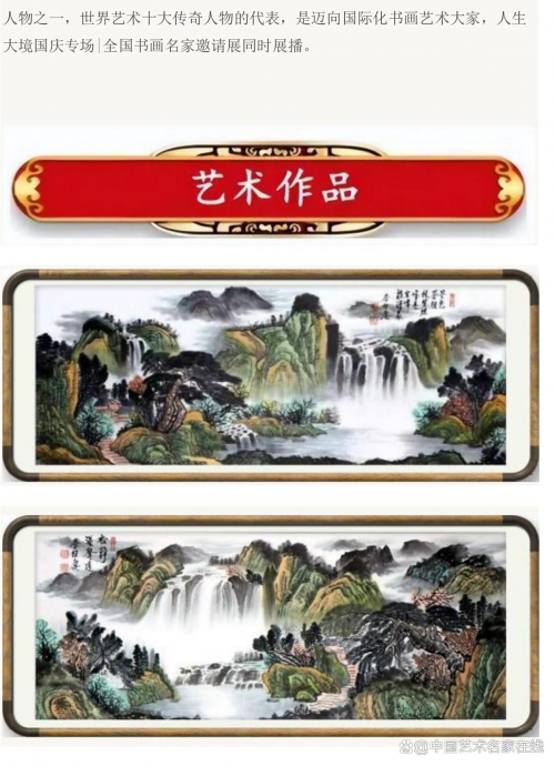 2024 年作为国之大者面向全国公开报道宣传!2024 年作为业界楷模宣传报道,同年作为世界艺术标杆宣传报道,并且荣获中国艺术界最高荣誉奖!评为 2024 年度艺术特殊贡献人物!2024 年作为守艺中华书画顶级人物公开报道,同年作为国际最具收藏价值艺术家宣传报道!做为“巴黎奥运文化交流大使”为艺术代言,新时代最受欢迎人民艺术家,中欧书画名家国际艺术线上交流展同时展出,其作品被评选《艺术中的诺贝尔奖获得者》艺术见证,功底见证。作为世界艺术功勋大师宣传报道,同时也是顶级收藏风向标人物!大国名家,世界高峰也对其进行宣传报道。同时也是时代先锋艺术人物,强势荣登了全球超实力派百强榜以及2025年的年度提名人物排行榜!作为中国文化前沿人物进行宣传报道。